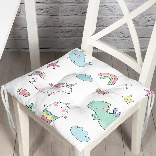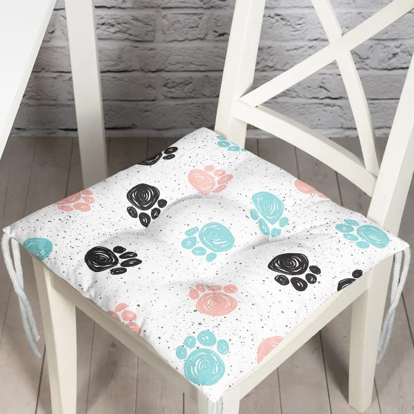 Kedi Ayak İzli Pati Desenli Modern Pofuduk Sandalye Minderi