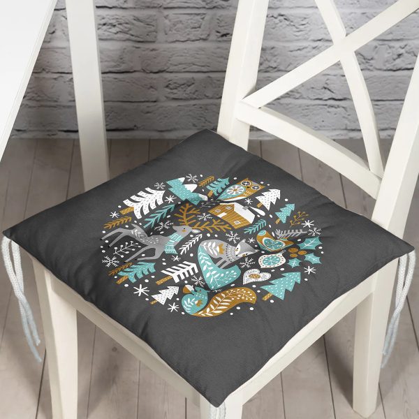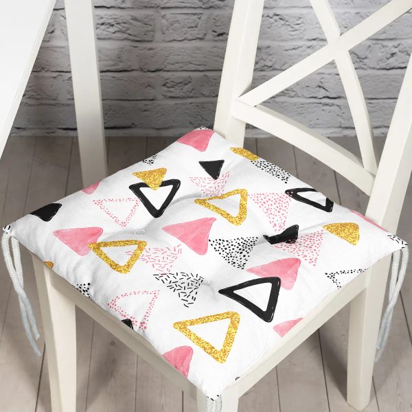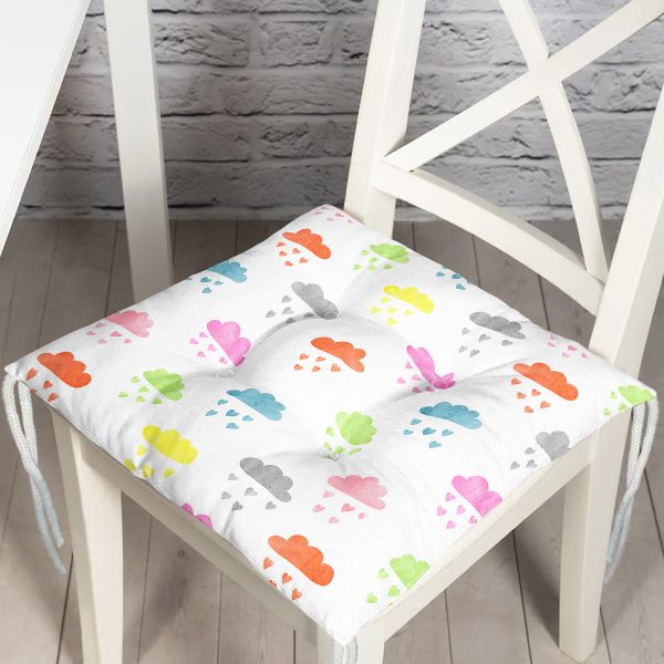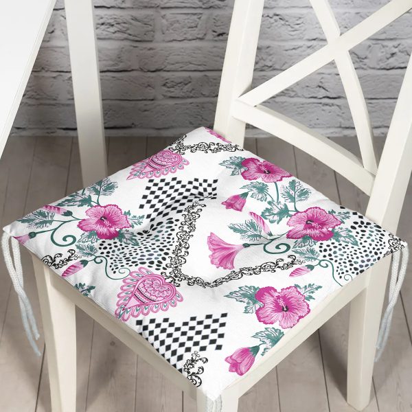 Kare Puanlı Kalp Kolye Motifli Modern Pofuduk Sandalye Minderi