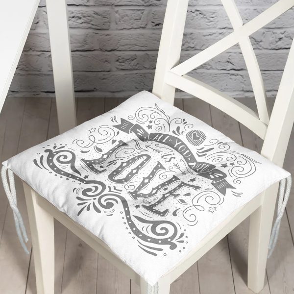 Love Yazılı Dijital Baskı Modern Pofuduk Sandalye Minderi