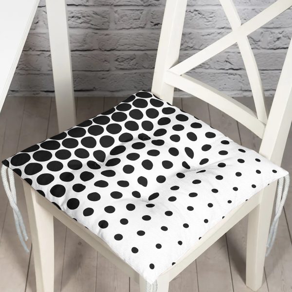 Siyah Beyaz İri Puanlı Pofuduk Sandalye Minderi