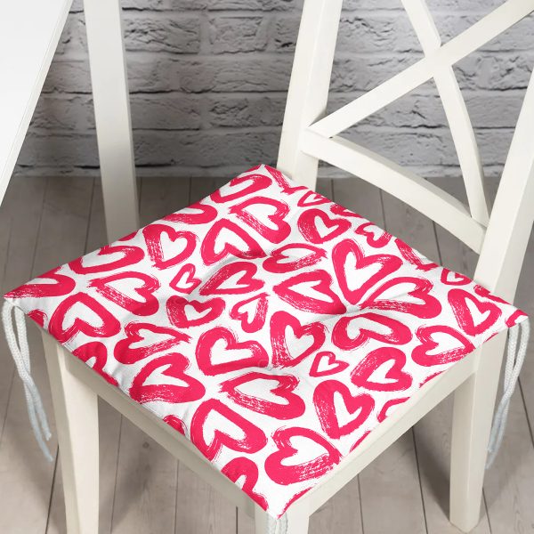 Love Yazılı Kalp Puanlı Motifli Modern Pofuduk Sandalye Minderi