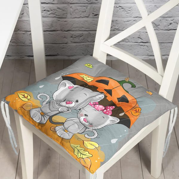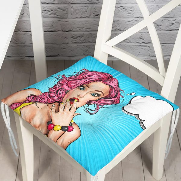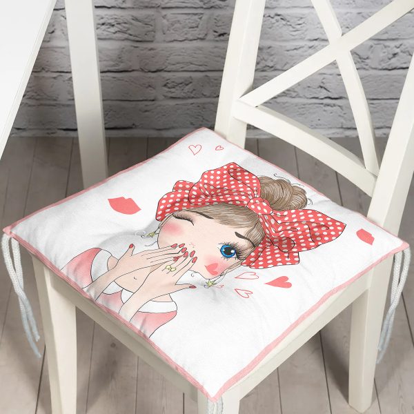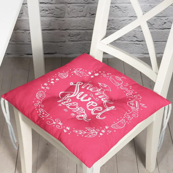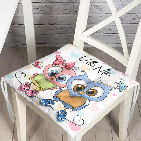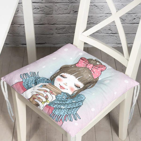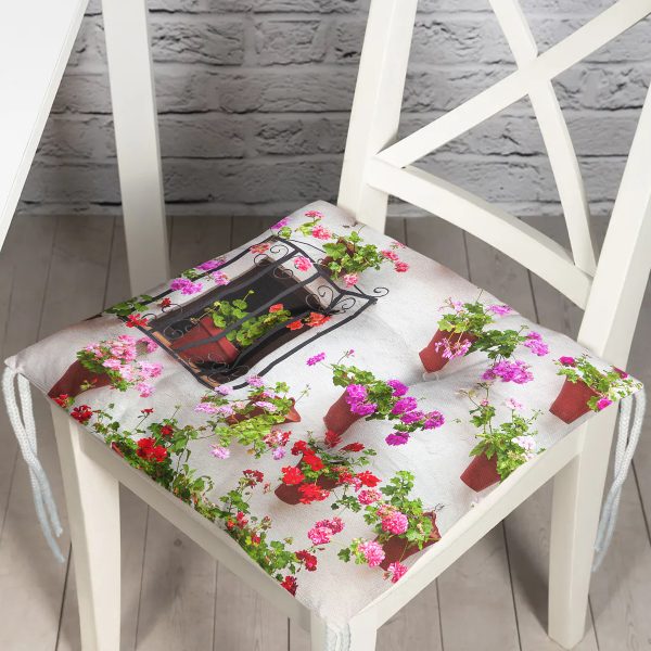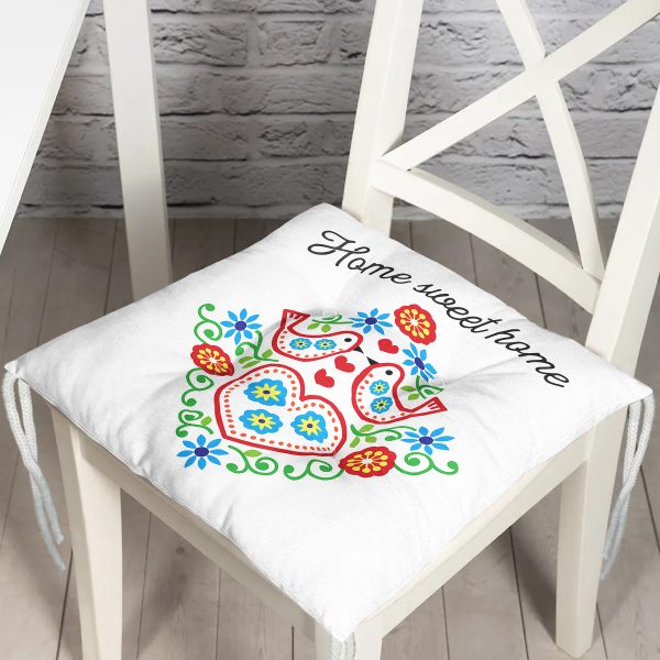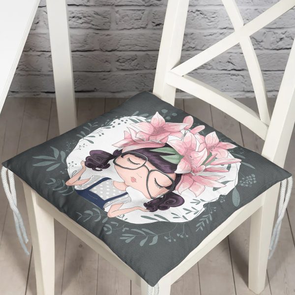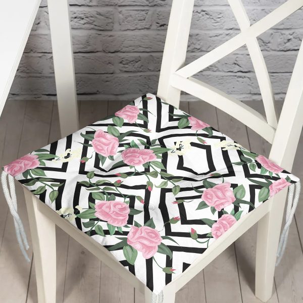 Kare Temalı Gül Çizimli Modern Pofuduk Sandalye Minderi