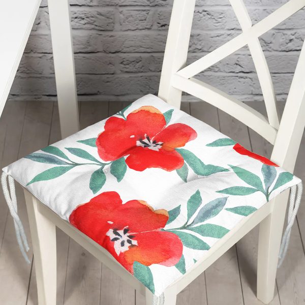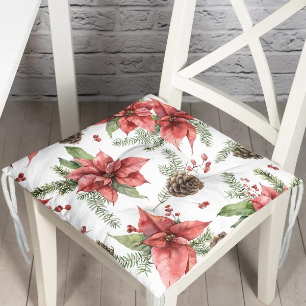 Kırmızı Gül & Kozalak Tasarımlı Dijital Baskılı Modern Pofuduk Sandalye Minderi
