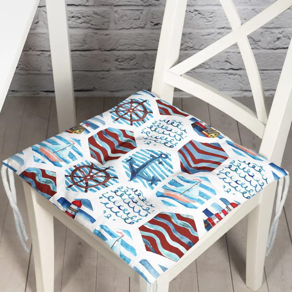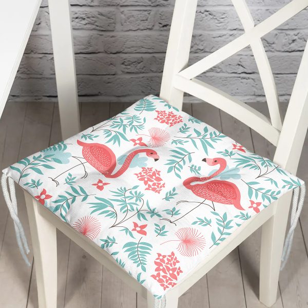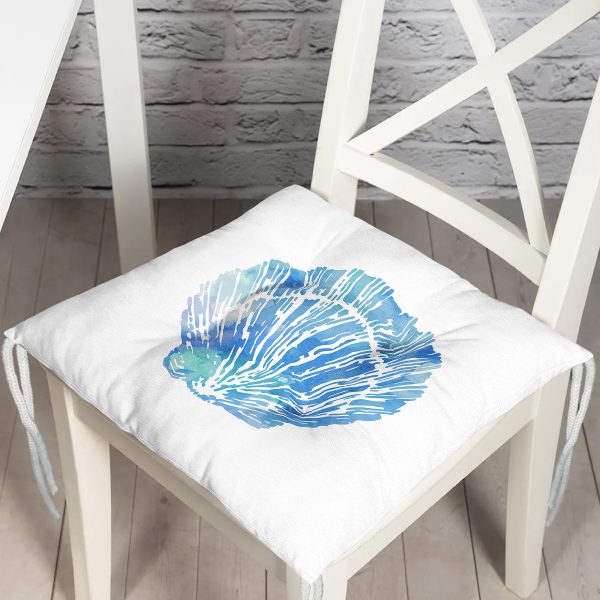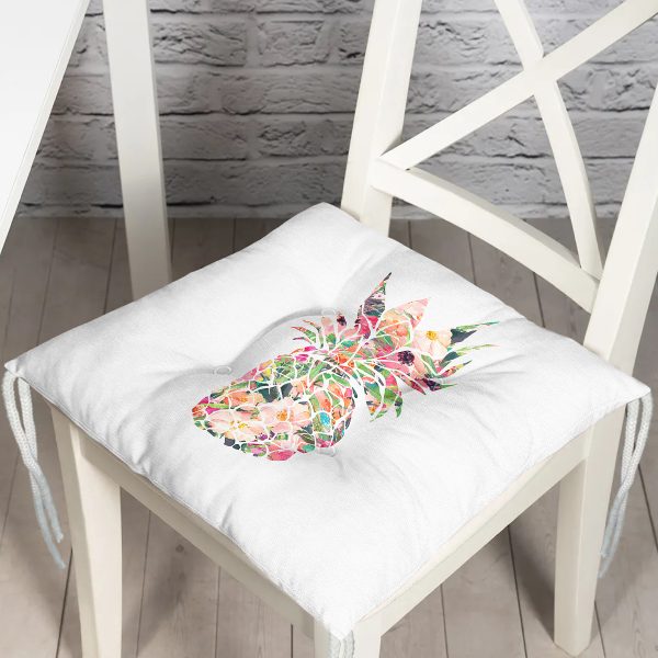 Beyaz Zemin Üzerinde Renkli Deniz Otu Desenli Dijital Baskılı Modern Pofuduk Sandalye Minderi