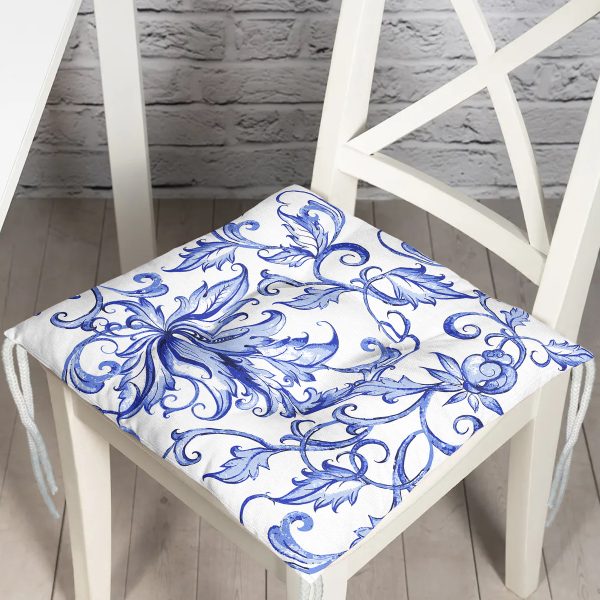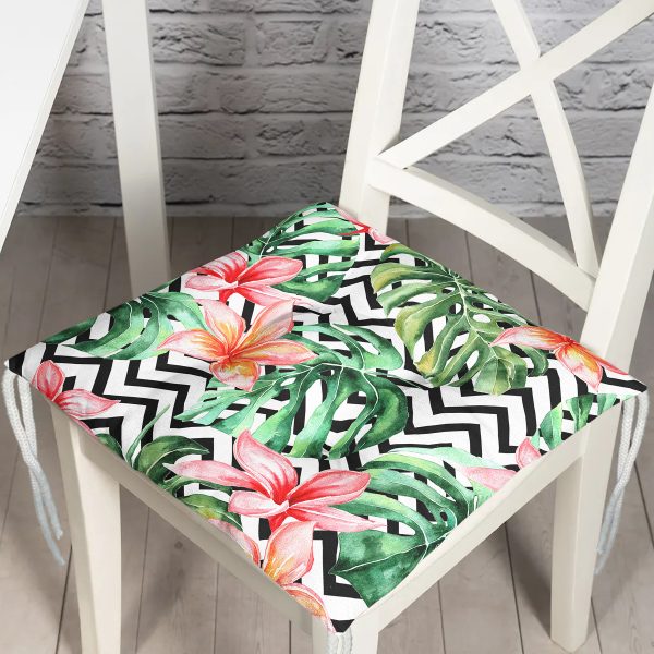 Modern Sarmaşık Desenli Dijital Baskılı Modern Pofuduk Sandalye Minderi