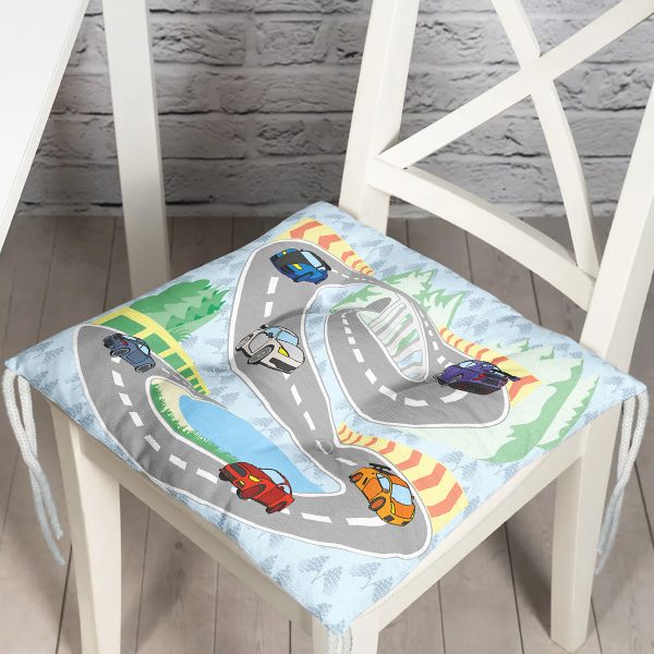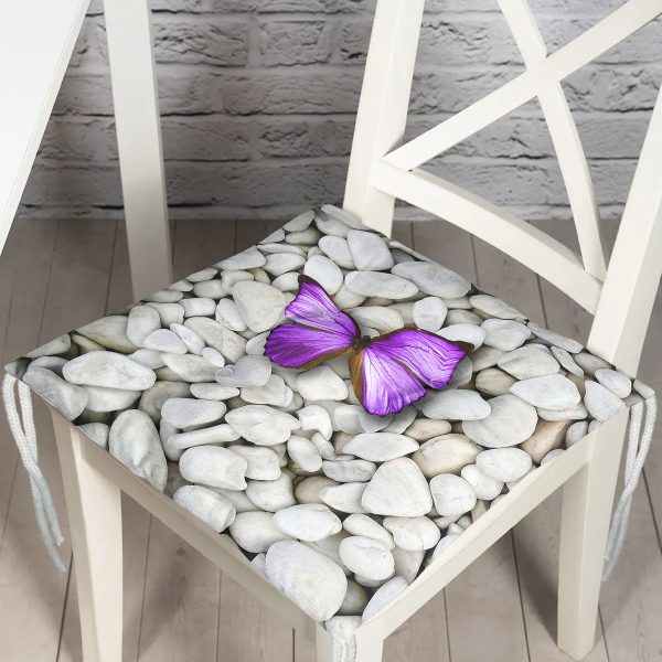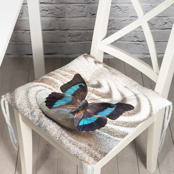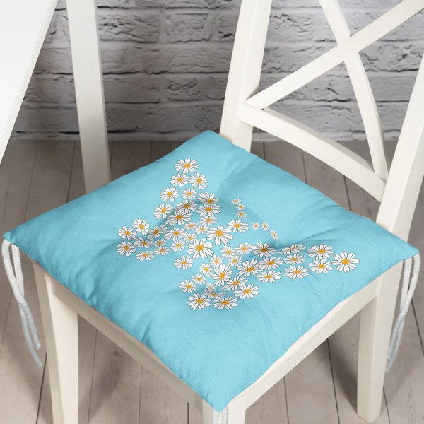 Mavi Zemin Papatyadan Kelebek Tasarımlı Dijital Baskılı Modern Pofuduk Sandalye Minderi