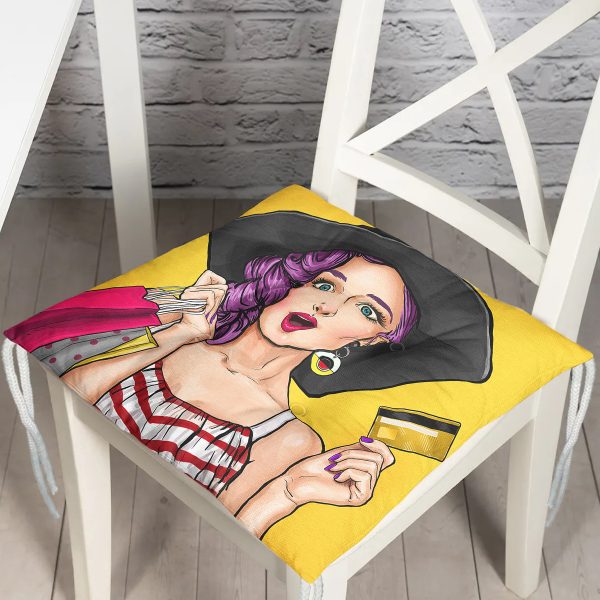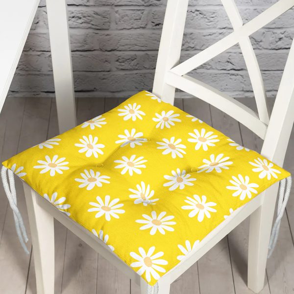 Sarı Zemin Papatya Desenli Dijital Baskılı Modern Pofuduk Sandalye Minderi