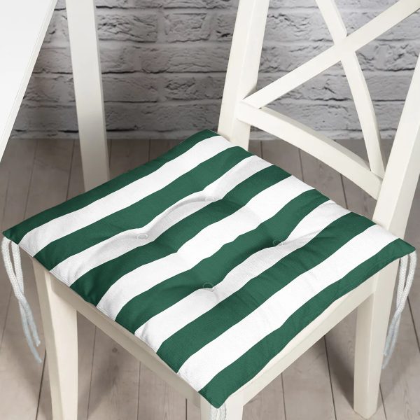 Yeşil Beyaz Düz Çizgi Tasarımlı Dijital Baskılı Modern Pofuduk Sandalye Minderi