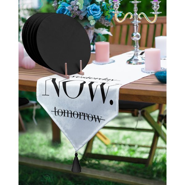 Realhomes Yest. NOW Tom. Özel Tasarımlı Üçgen Püsküllü Runner 1 Adet & 6 Adet Siyah Renkli Supla