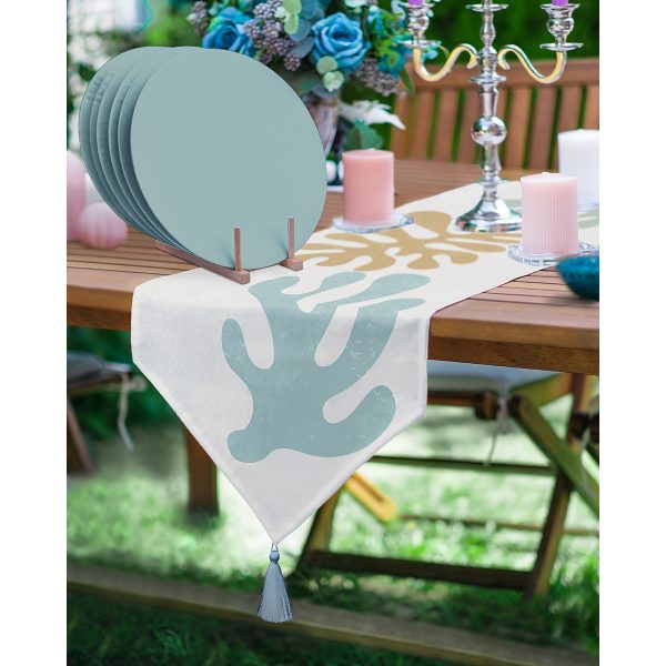 Realhomes Bohom Yosun Temalı Üçgen Püsküllü Runner 1 Adet & 6 Adet Açık Mavi Renkli Supla