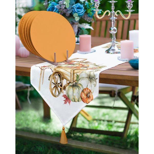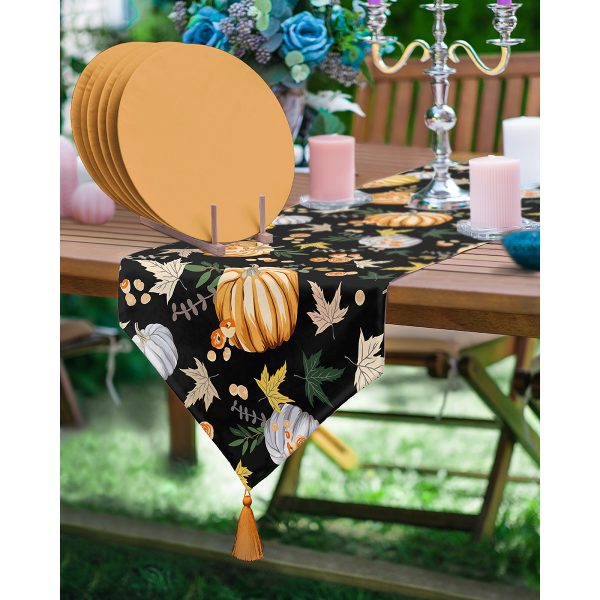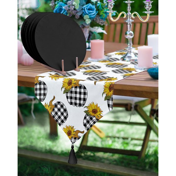 Realhomes Ekose Tasarımlı Kabak Temalı Üçgen Püsküllü Runner 1 Adet & 6 Adet Siyah Renkli Supla