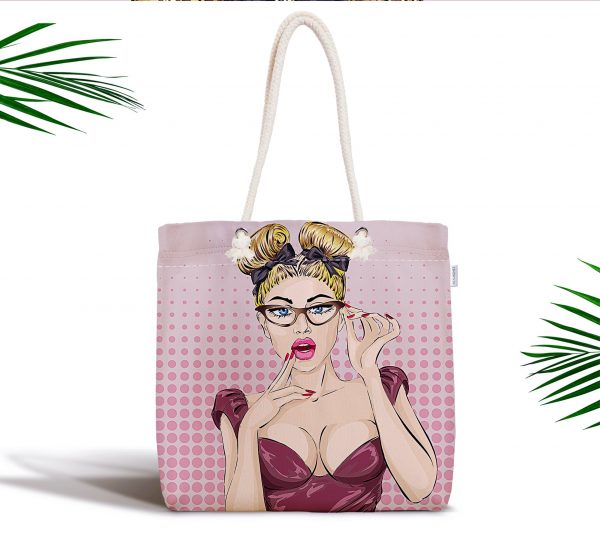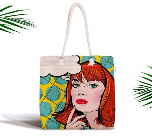 Fashion Pop Art Tasarımlı Dijital Baskılı Fermuarlı Plaj Çantası