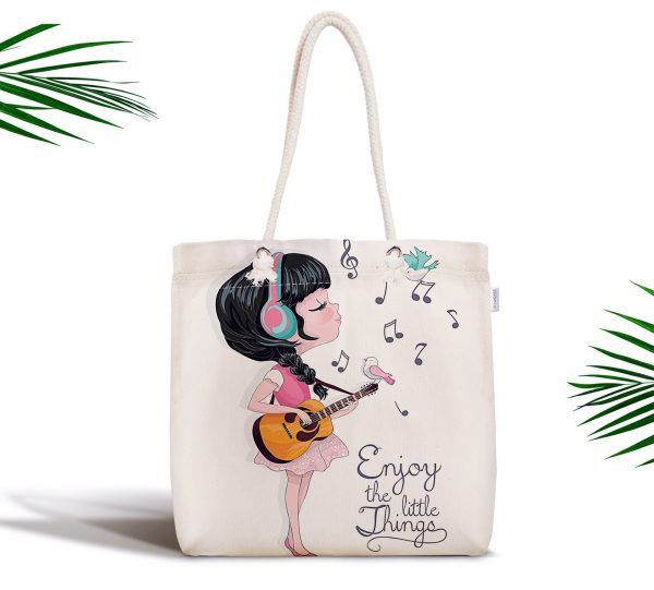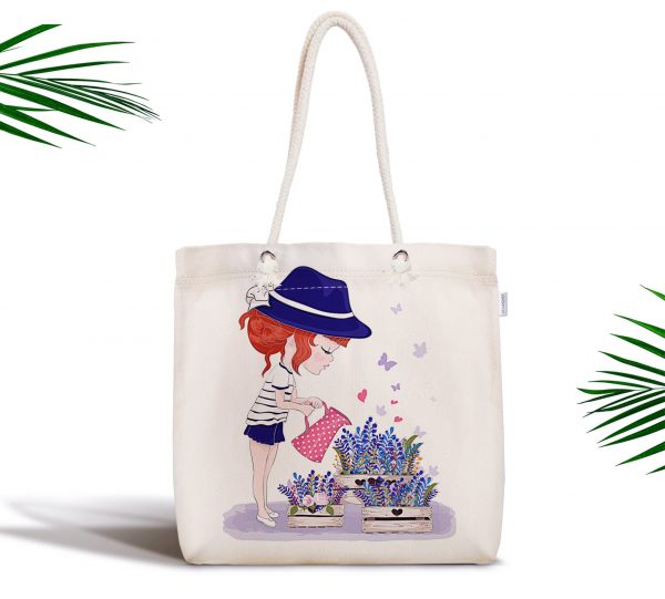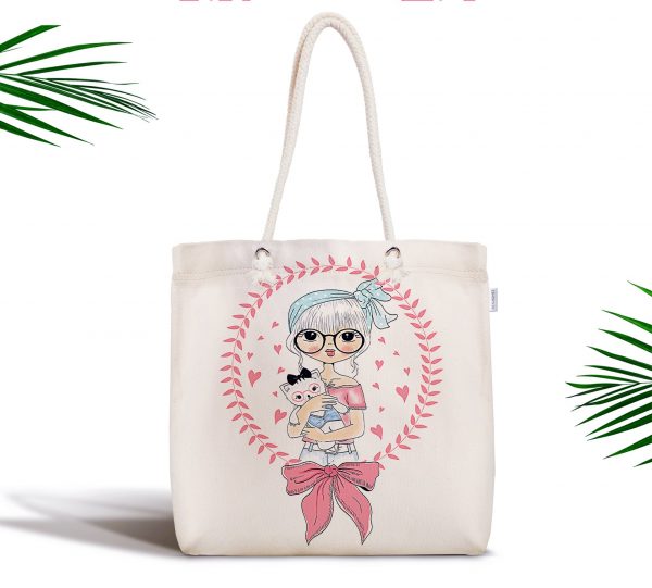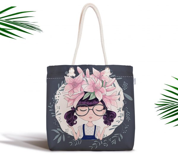 Kız Temalı Dijital Baskılı Fermuarlı Kumaş Çanta