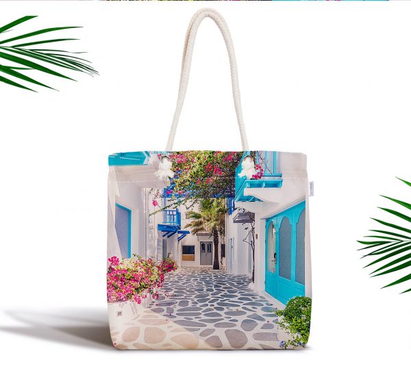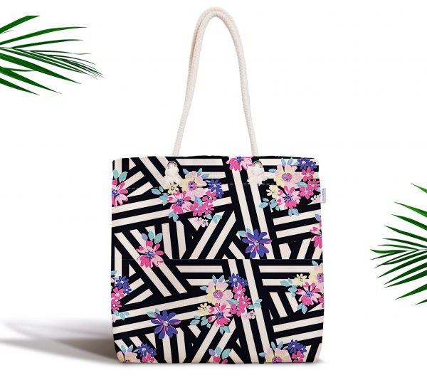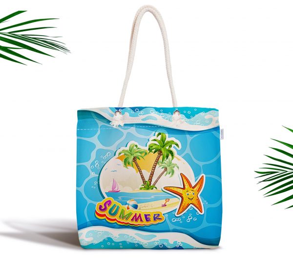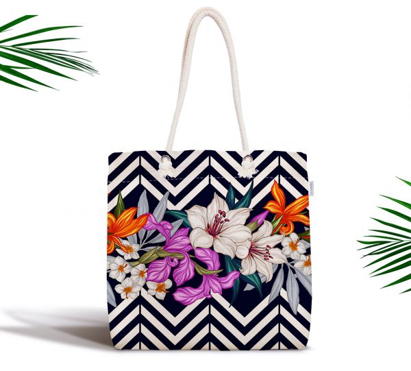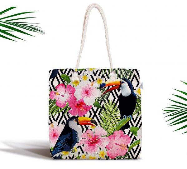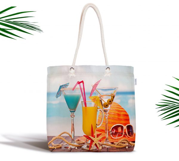 Kokteyl Plaj Özel Tasarım Fermuarlı Dijital Baskılı Plaj Çantası