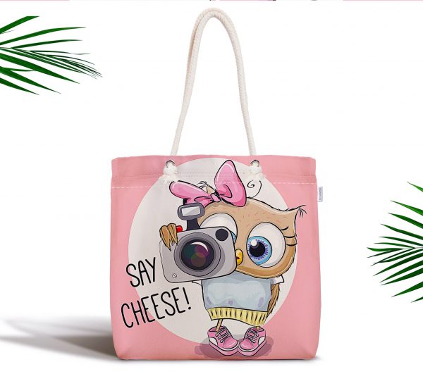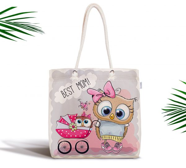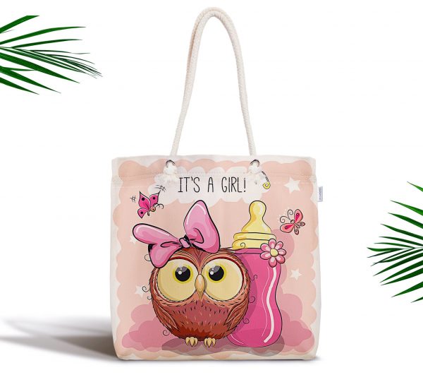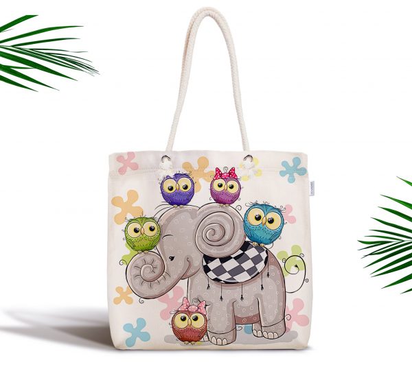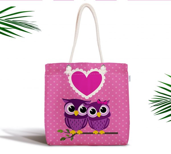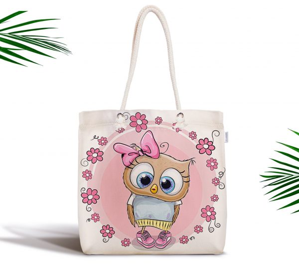 Beyaz Zeminde Baykuşlar Özel Tasarım Dijital Baskılı Bez Çanta