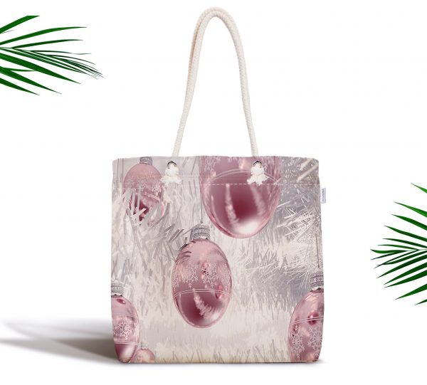 Yılbaşı Küreleri Dijital Baskılı Fermuarlı Modern Kumaş Çanta