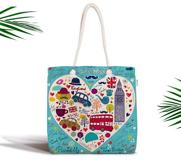 London Özel Tasarımlı Dijital Baskılı Fermuarlı Modern Kumaş Çanta