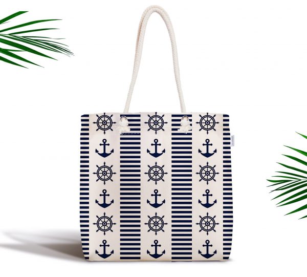 Denizci Motifli Dijital Baskılı Fermuarlı Kumaş Çanta