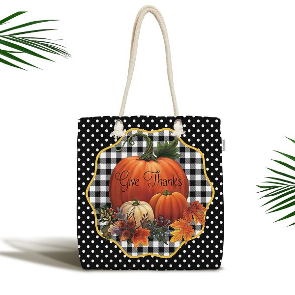 Siyah Puantiyeli Kabak Tasarımlı Dijital Baskılı Fermuarlı Kumaş Plaj Çantası
