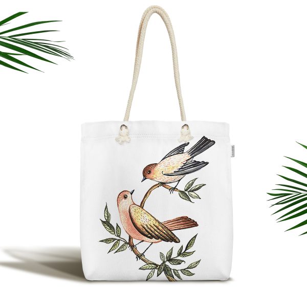 Daldaki Kırlangıç Kuşları Özel Tasarımlı Fermuarlı Kumaş Plaj Çantası