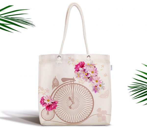 Modern Bisiklet Desenli Dijital Baskılı Fermuarlı Kumaş Çanta