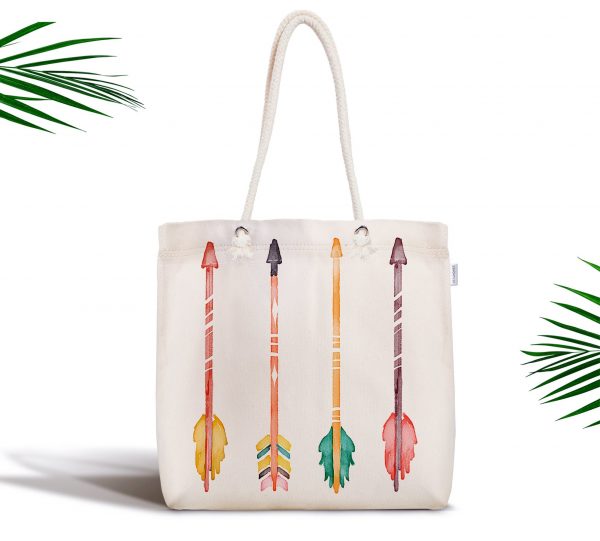 Renkli Oklar Modern Dijital Baskılı Fermuarlı Kumaş Çanta