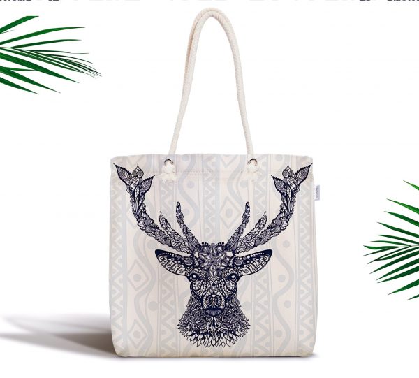 Geyik Motifli Özel Tasarım Dijital Baskılı Fermuarlı Kumaş Çanta