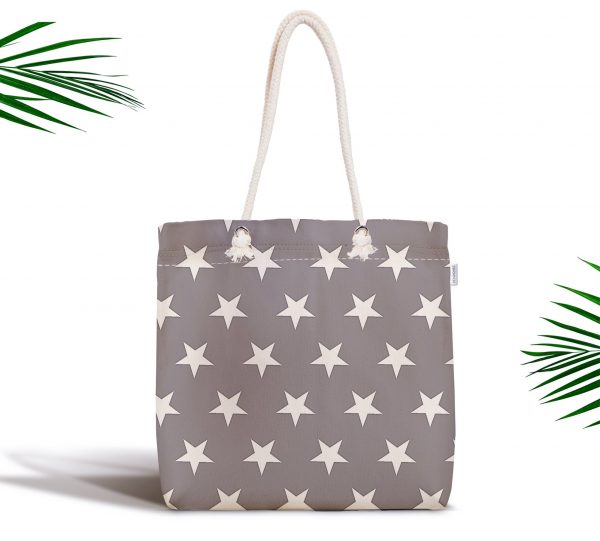 Yıldız Desenli Dijital Baskılı Fermuarlı Modern Kumaş Çanta