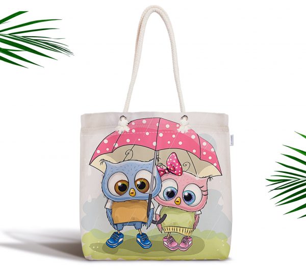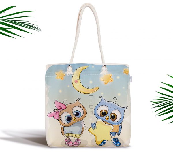 Baykuş Resimli Dijital Baskılı Fermuarlı Modern Kumaş Çanta
