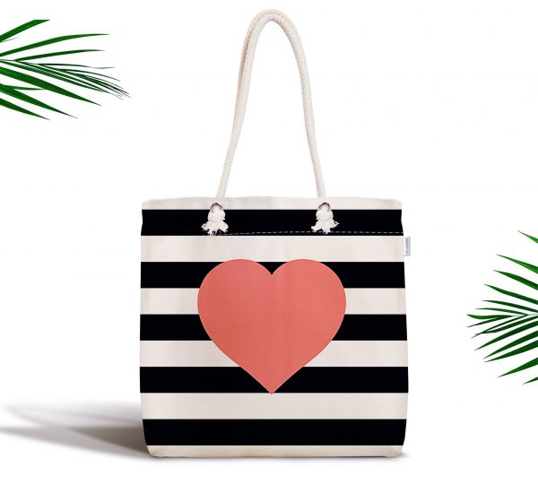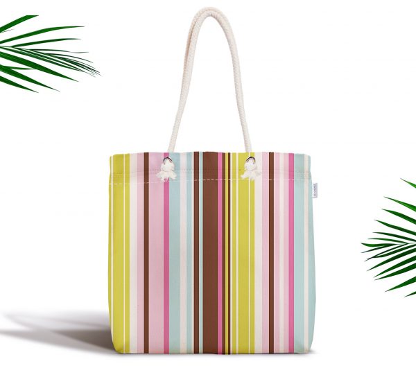 Renkli Çizgili Desenli Dijital Baskılı Fermuarlı Kumaş Çanta