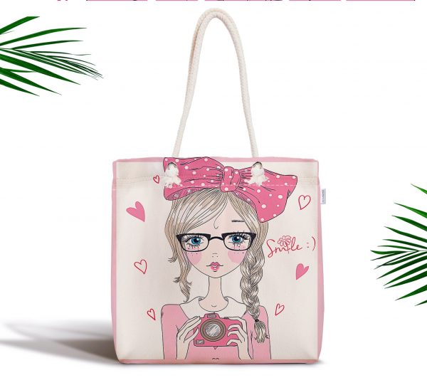 Fashion Girl Dijital Baskılı Modern Fermuarlı Kumaş Çanta