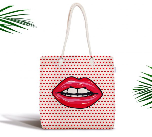 Dudak Resimli Dijital Baskılı Fermuarlı Modern Kumaş Çanta
