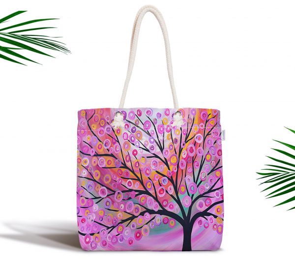 Pembe Renkli Dijital Baskılı Fermuarlı Modern Kumaş Çanta