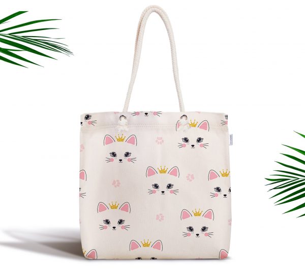 Sevimli Kediler Dijital Baskılı Fermuarlı Modern Kumaş Çanta