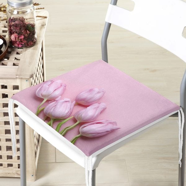 Pembe Lale Dekorati Kare Sandalye Minderi