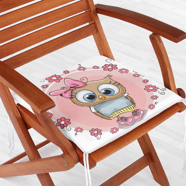Baykuş Desenli Dekorati Kare Sandalye Minderi 40x40cm Fermuarlı