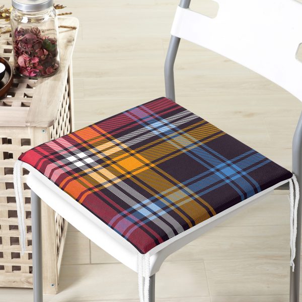 Renkli Ekose Desenli Özel Tasarım Fermuarlı Sandalye Minderi