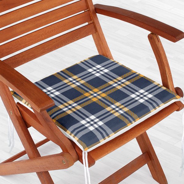Lacivert ve Sarı Modern Tasarım Fermuarlı Sandalye Minderi
