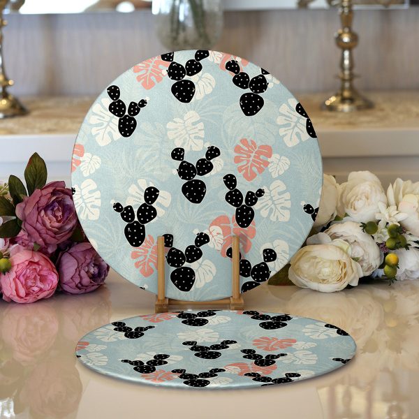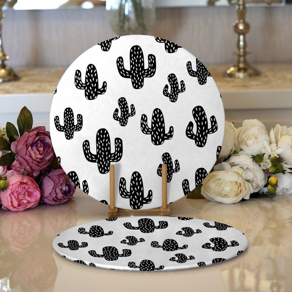 Realhomes Siyah Beyaz Kaktüs Desenli Modern 2’li Yuvarlak Servis Altlığı – Supla