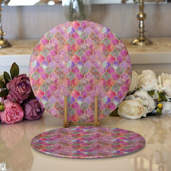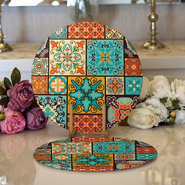 Realhomes Renkli Zeminli Geometrik Desenli Dijital Baskılı Modern 2’li Yuvarlak Servis Altlığı – Supla