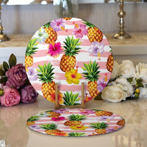 Realhomes Pembe Zeminli Ananaslar Özel Tasarım Modern 2’li Yuvarlak Servis Altlığı – Supla