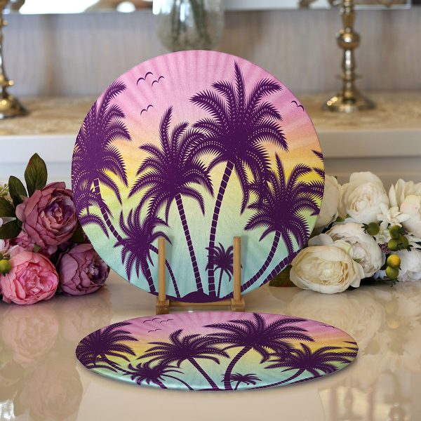 Realhomes Renkli Zeminde Palmiye Motifli Dijital Baskılı Modern 2’li Yuvarlak Servis Altlığı – Supla