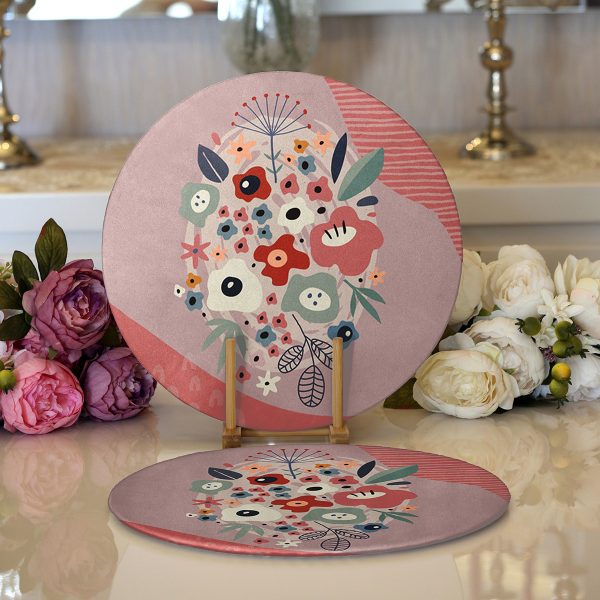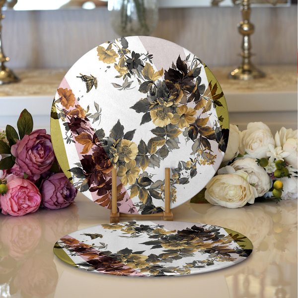 Realhomes Çiçek Demeti Dijital Baskılı Modern 2’li Yuvarlak Servis Altlığı – Supla