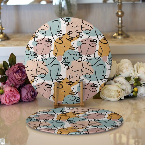 Realhomes Renkli Zeminli Onedraw Çizimli Dijital Baskılı Modern 2’li Yuvarlak Servis Altlığı – Supla