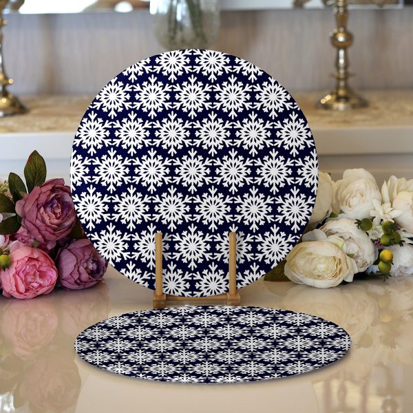 Realhomes Lacivert Zeminli Beyaz Kartanesi Desenli Dijital Baskılı Modern 2’li Yuvarlak Servis Altlığı – Supla