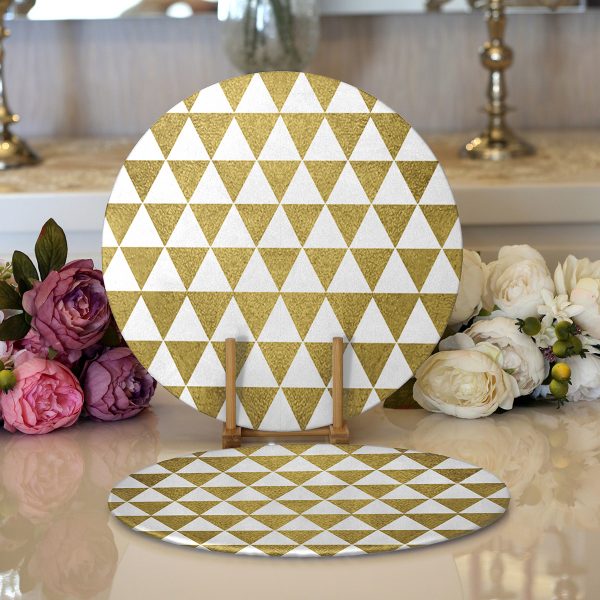 Realhomes Beyaz Zeminde Gold Üçgen Desenli Dijital Baskılı Modern 2’li Yuvarlak Servis Altlığı – Supla