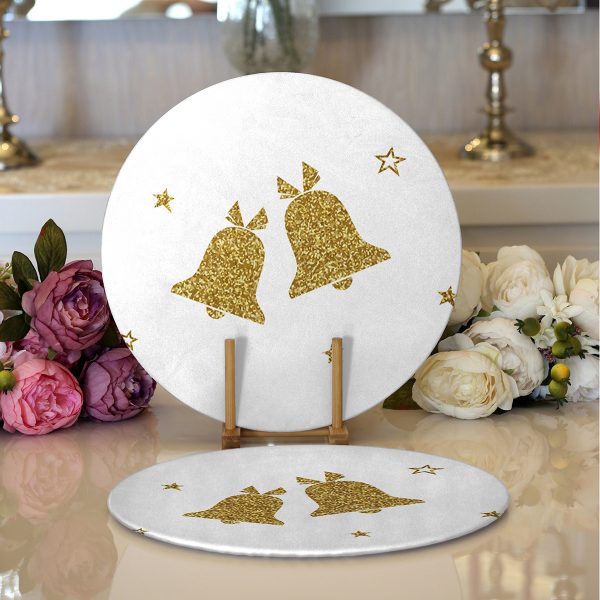 Realhomes Beyaz Zeminde Gold Renkli Çan Desenli Dijital Baskılı Modern 2’li Yuvarlak Servis Altlığı – Supla