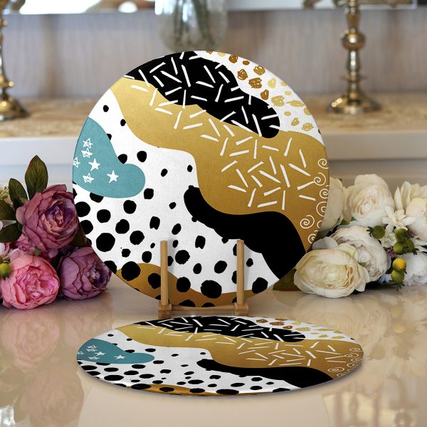 Realhomes Sıyah Beyaz Zeminde Gold Detaylı Renkli Çizim Dijital Baskılı Modern 2’li Yuvarlak Servis Altlığı – Supla
