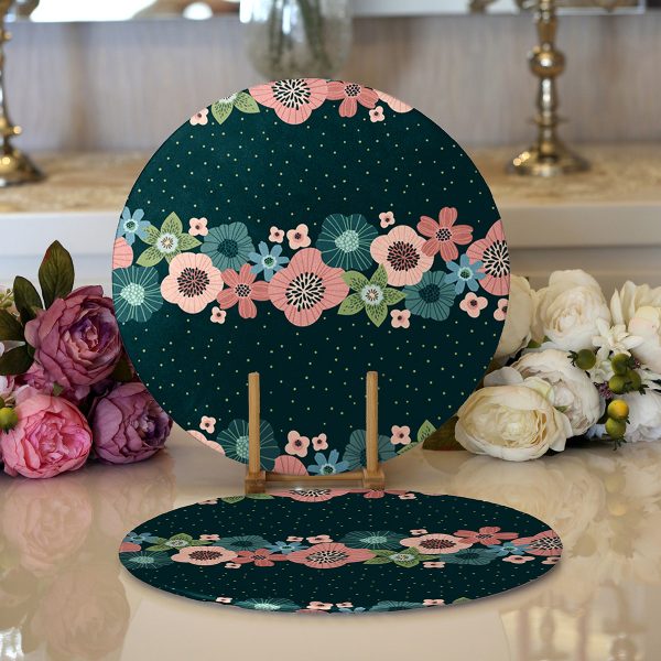 Realhomes Rengarenk Zemin Üzerinde Çiçek Desenli Dijital Baskılı Modern 2’li Yuvarlak Servis Altlığı – Supla