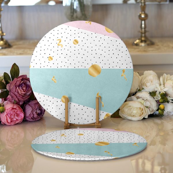 Realhomes Renkli Zemin Üzerinde Renkli Geometrik Desenli Modern 2’li Yuvarlak Servis Altlığı – Supla